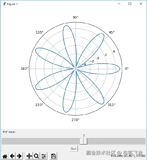 当您运行上述代码时,将滑块第一次拖动到 8 时,您应该会第一次看到左侧的图,而右侧则是右侧的图。您可以通过单击退出按钮退出应用: