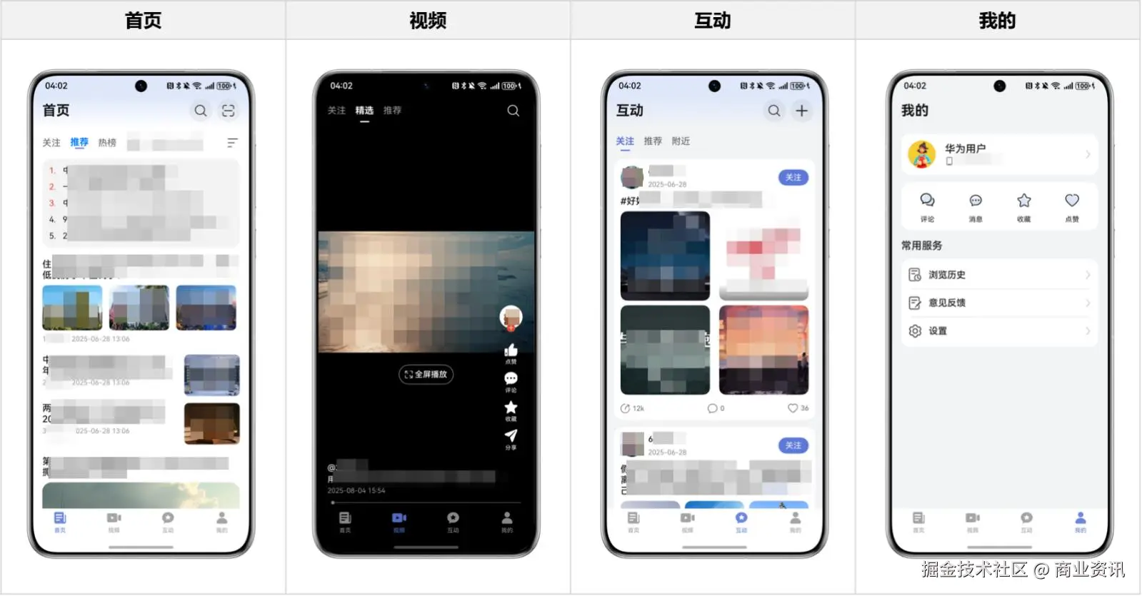 综合新闻行业模板是基于以上行业分析实现的参考,为综合新闻类应用提供了常用功能的开发样例,涵盖新闻分类、列表、详情,精选视频,互动评论,内容分享等多个实用场景。