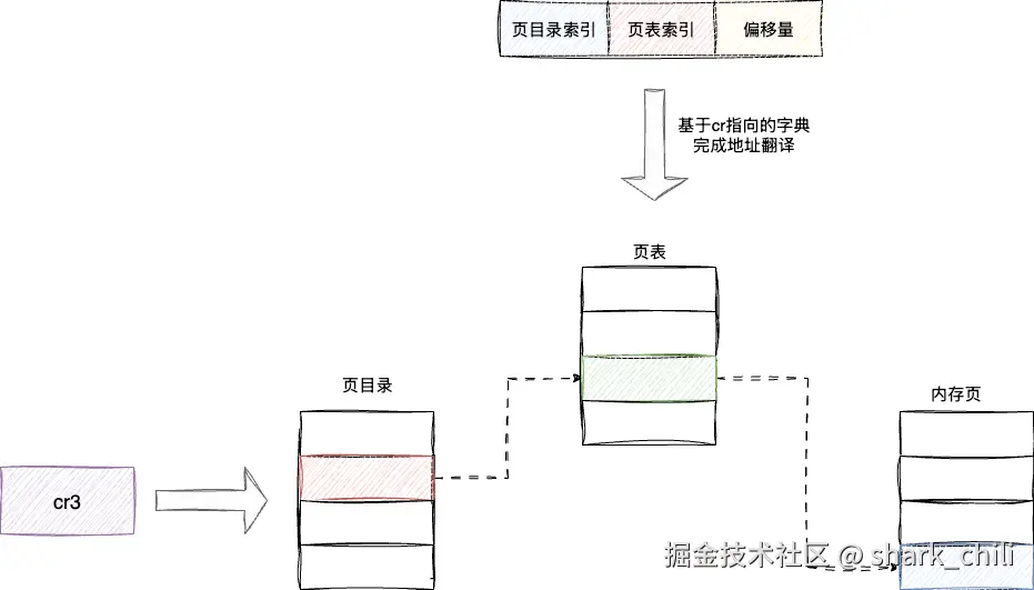上文提及地址地址转换过程,本质上MMU(内存管理单元)通过cr3寄存器获取数据的页目录索引、页表索引、偏移量之后进行地址解析转译,对应需要进行多次的内存访问: