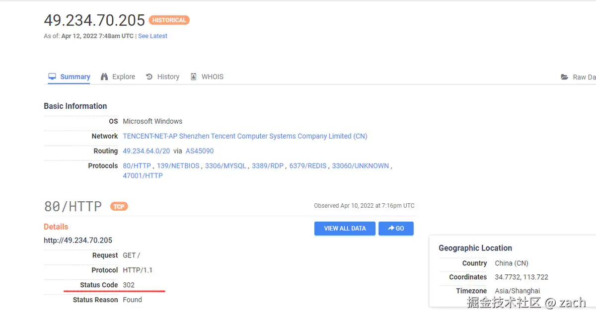 通过shodan我们可以直接看到 HTTP/1.1 302 不用再每个都要点进去看了,相对来说比方式一方便。