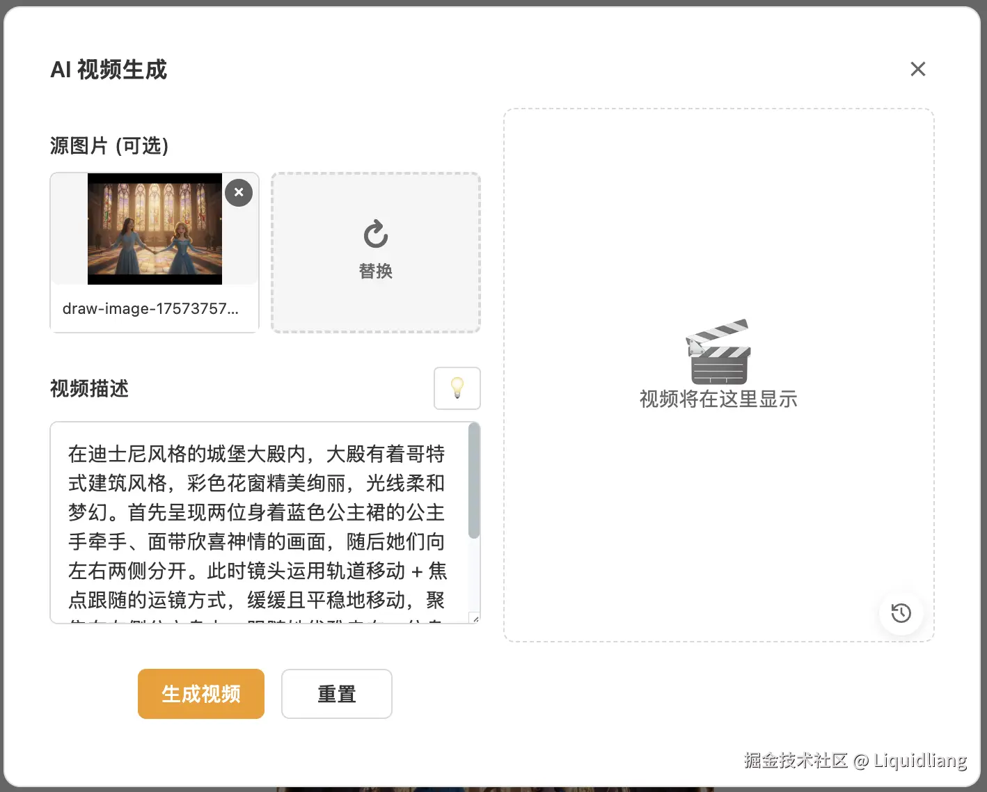 3. 在弹窗上点生成按钮,调用tu-zi提供的API接口生成视频