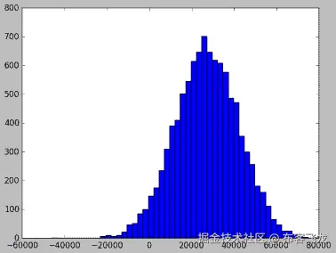 incomes = np.random.normal(27000, 15000, 10000)