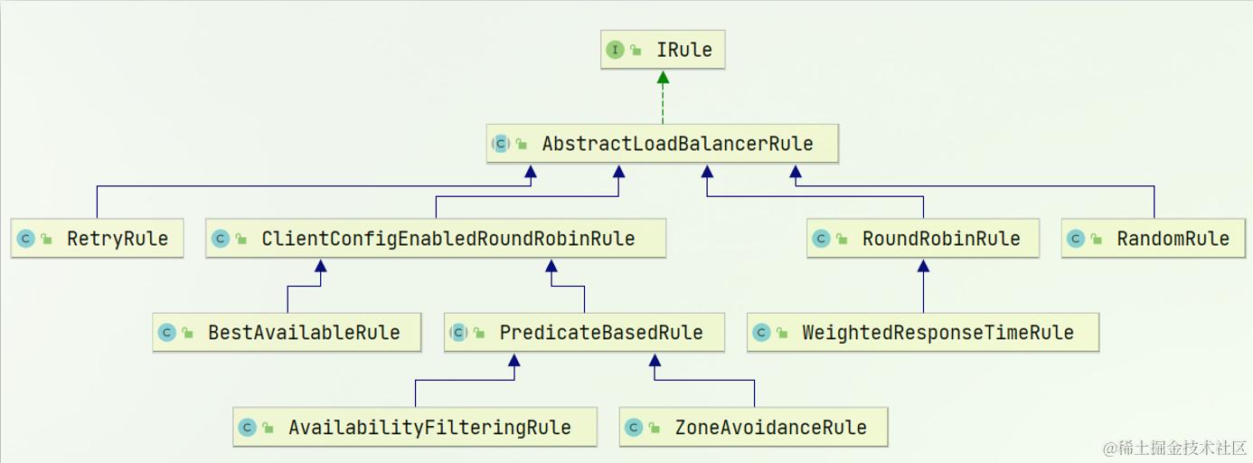 负载均衡的规则都定义在IRule接口中,而IRule有很多不同的实现类: