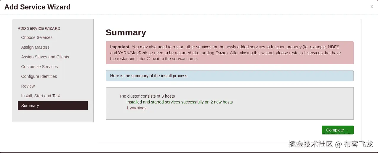 这标志着使用 Ambari 创建 Hadoop 集群的结束。