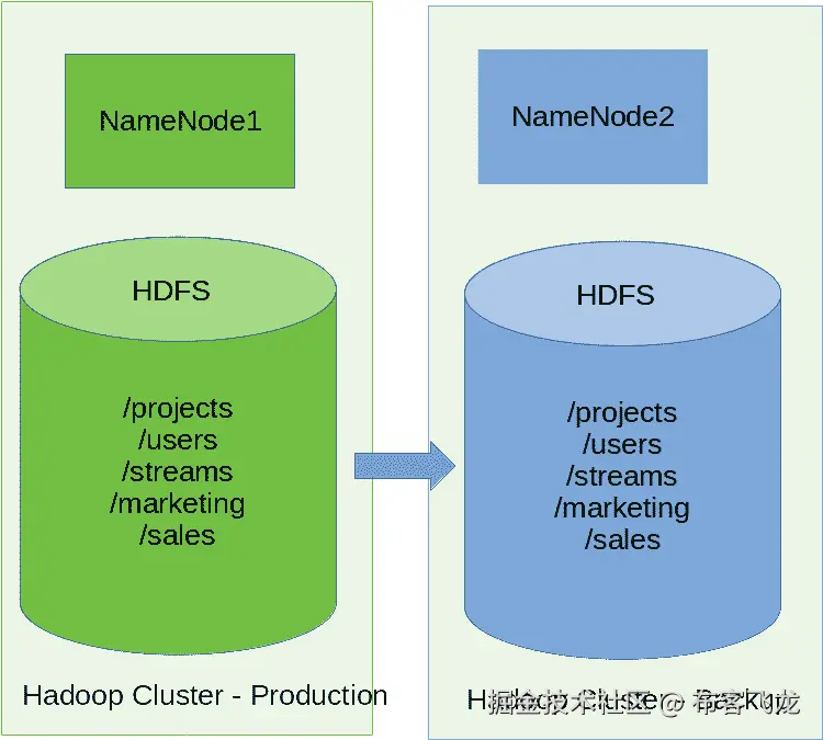 hadoop distcp hdfs://NameNode1:8020/marketing hdfs://NameNode2:8020/marketing