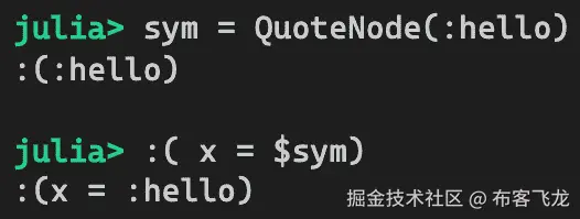 结果有点有趣。正如你所见,代码现在被包裹在一个quote/end块中,而不是begin/end块中。这实际上是有道理的,因为显示的是引用的表达式而不是原始源代码。记住,这是抽象语法树而不是原始代码。