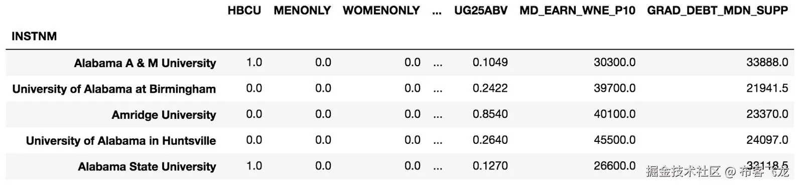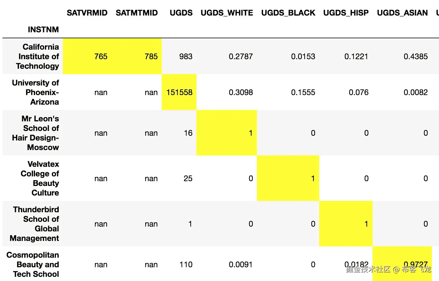 - 读取大学数据集,并将索引设置为机构名称:
