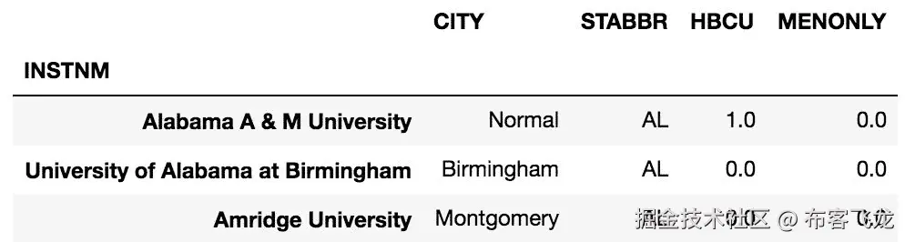 >>> city.loc['Alabama State University':