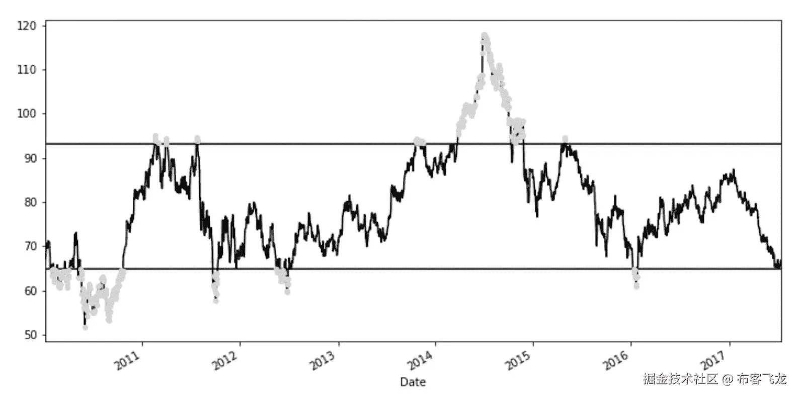 不幸的是,我们的工作速度是 Pandas idxmax内置方法的五倍,但是不管其性能如何下降,许多创新且实用的解决方案都使用布尔序列和cumsum累积方法来查找条纹或一个轴的特定模式。