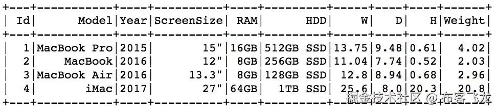 , (2, 'MacBook', 2016, '12"', '8GB', '256GB SSD'
