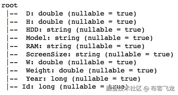 但数据类型保持不变:sample_data_json_df.printSchema()