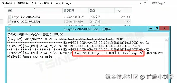 接报即动,技术人员翻日志发现,EasyDSS 默认 HTTP 端口 10081 被其他进程“霸位”,服务因此卡住,启动界面止步不前,如图。