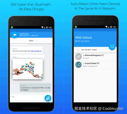 Feem 是一款类似 SHAREit 的应用,可让您顺畅地离线传输文件。其传输速度比蓝牙快 50 倍。如果您需要大量传输大文件,它是您的理想传输应用。在安全性方面,它使用 TLS 加密所有本地传输。它甚至还内置聊天功能,可让您在设备之间发送文件和链接。