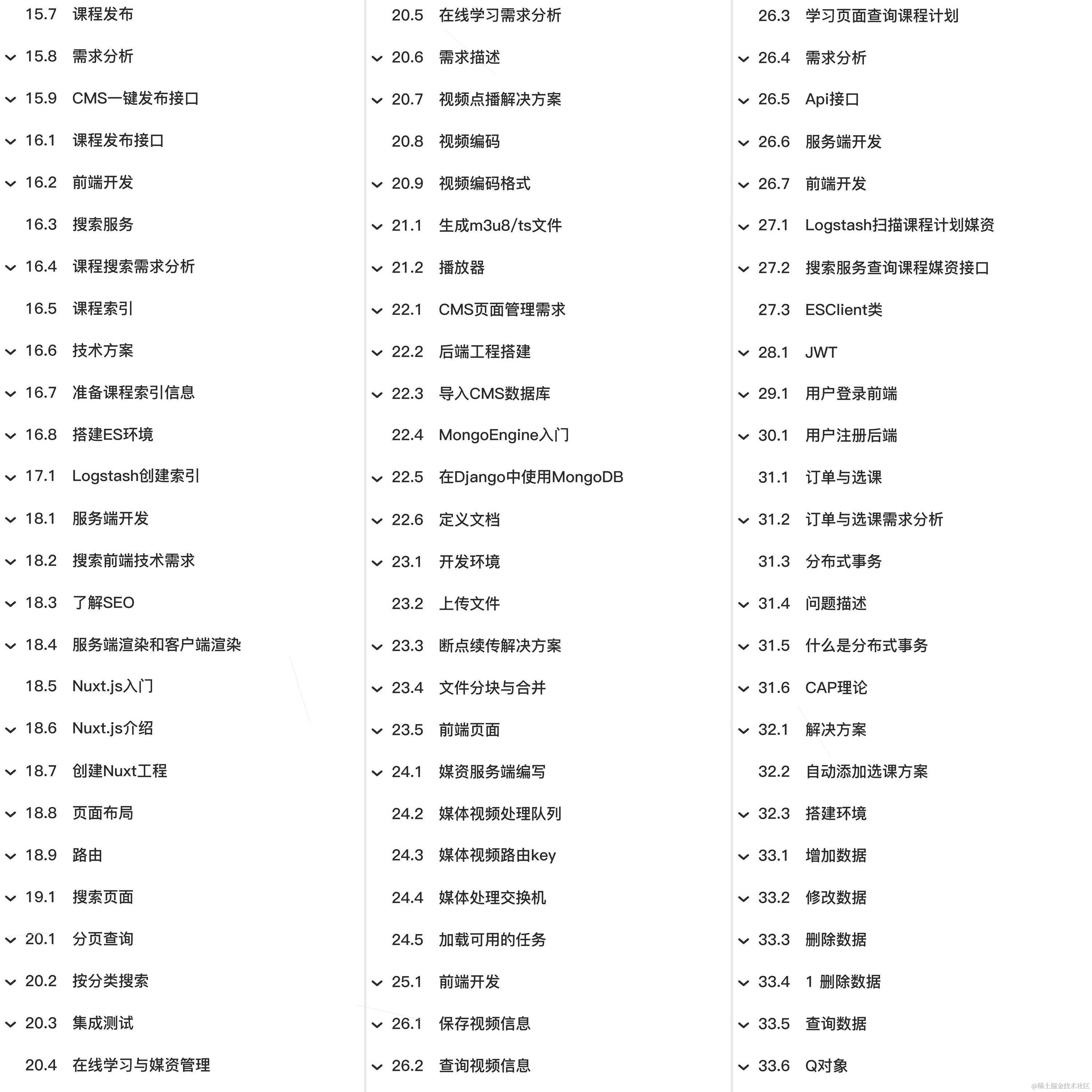 🏆🏆🏆教程全知识点简介:数据模型 模板管理 模板管理业务流程 模板制作 GridFS研究 模板存储 静态化测试 页面预览 4 添加“页面预览”链接 页面发布 需求分析 技术方案 测试 管理 环境搭建 我的 数据字典 新增 页面完善 新增 服务端 信息修改 管理页面说明 服务端 前端 计划 页面原型 图片 上传图片开发 项目概述 项目背景 项目的功能构架 项目的技术架构 CMS 什么是CMS CMS需求分析与工程搭建 静态门户工程搭建 图片查询 前端开发 预览 预览技术方案 详情页面静态化 数据模型查询接口 信息模板设计 预览功能开发 CMS页面预览测试 CMS添加页面接口 发布 搜索服务 搜索需求分析 索引 准备 索引信息 搭建ES环境 Logstash创建索引 搜索前端技术需求 了解SEO 服务端渲染和客户端渲染 Nuxt.js入门 创建Nuxt工程 页面布局 路由 搜索页面 分页查询 按分类搜索 集成测试 在线学习与媒资管理 在线学习需求分析 需求描述 视频点播解决方案 视频编码 生成m3u8/ts文件 播放器 后端工程搭建 导入CMS数据库 MongoEngine入门 在Django中使用MongoDB 定义文档 开发环境 上传文件 断点续传解决方案 文件分块与合并 前端页面 媒资服务端编写 媒体视频处理队列 媒体视频路由key 媒体处理交换机 加载可用的任务 保存视频信息 学习页面查询 计划 Api接口 Logstash扫描 计划媒资 搜索服务查询 媒资接口 ESClient类 JWT 用户登录前端 用户注册后端 订order单与选课 分布式事务 问题描述 CAP理论 解决方案 自动添加选课方案 增加数据 修改数据 删除数据 查询数据 Q对象 其他 查询集 QuerySet 页面管理后端开发 Celery Beat定时任务 订order单服务定时发送消息 查询前N条任务 接口说明 接口开发规范 封装异常处理 封装JSON返回值 站点列表和模板列表接口 新增页面 页面查询接口定义 自定义条件查询 3 测试接口 页面详情 修改页面 删除页面 CMS前端工程创建 导入系统管理前端工程 单页面应用介绍 CMS前端页面查询开发 创建页面 Table组件测试 进入页面立即查询 前后端请求响应流程小结 新增页面前端开发 添加页面测试 页面处理流程 页面静态化及预览发布 页面静态化需求