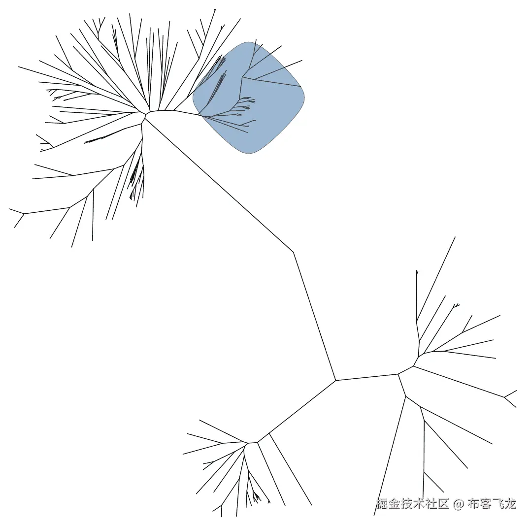 ggtree(itol, layout = "unrooted") + geom_hilight_encircle(node = 11, fill = "steelblue")
