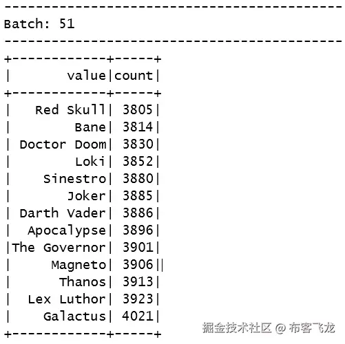 - 一旦数据被队列流接收,您将看到以下输出: