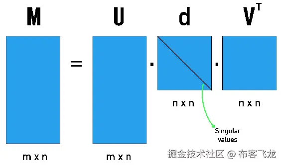特征值分解也是一种适用于平方矩阵的分解技术。 使用特征值分解分解方阵(M)时,将得到三个矩阵。 这些矩阵之一(Q)在列中包含特征向量,另一个矩阵(L)在对角线中包含特征值,最后一个矩阵是特征向量矩阵(Q^(-1))。