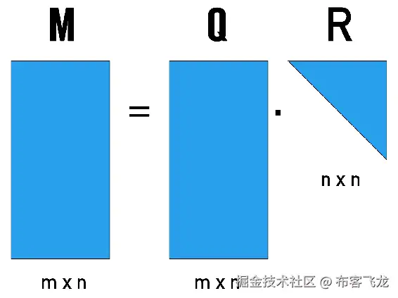 您可以通过应用 QR 分解将正方形或矩形矩阵(M)分解为正交矩阵(Q)和上三角矩阵(R)。 可以用以下公式表示: