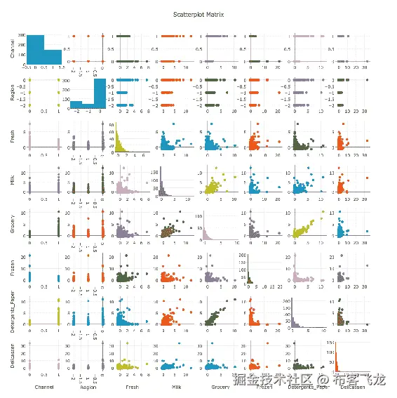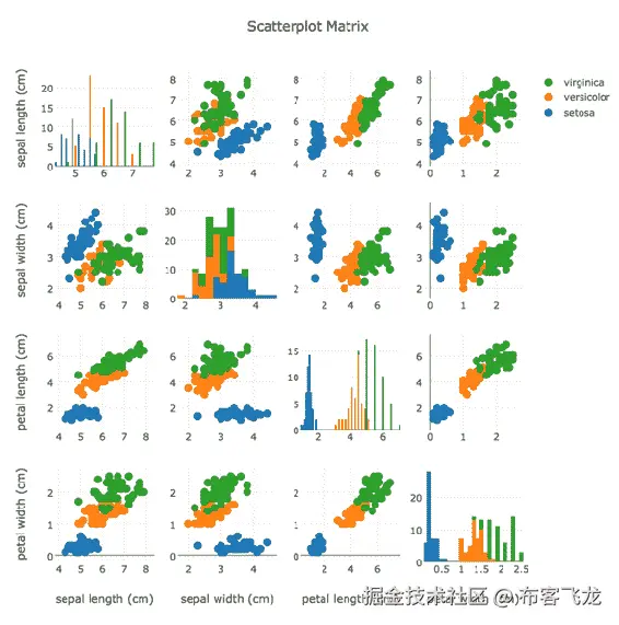 使用plotly图形工厂,可以绘制scatterplot矩阵,如下所示: