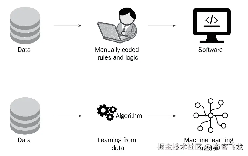 在我开始从事人工智能/机器学习领域的工作后,我开始使用机器学习技术解决许多类似挑战。有了机器学习,我无需提出复杂的规则,这些规则通常需要深入的数据和领域专业知识来创建或维护决策所需的复杂规则。相反,我专注于收集高质量的数据,并使用机器学习算法直接从数据中学习规则和模式。这种新的方法消除了创建新规则(例如,对深度领域专业知识的要求,或避免人类偏见)以及维护现有规则的许多挑战性方面。在产品发布前验证模型,我们可以检查模型性能指标,如准确率。虽然这仍然需要数据科学专业知识来解释模型指标与业务问题和数据集的性质之间的关系,但它不需要对所有不同场景进行详尽的手动测试。当一个模型部署到生产环境中时,我们会通过监控生产数据与用于模型训练的数据之间的任何重大变化来监控模型是否按预期执行。我们会收集新的未见数据和生产数据的标签,并定期测试模型性能,以确保其预测准确性在面对新的、以前未见的生产数据时保持稳健。为了解释模型为何以某种方式做出决策,我们不需要打开源代码来重新检查硬编码的逻辑。相反,我们会依赖机器学习技术来帮助解释不同输入特征的相对重要性,以了解哪些因素在机器学习模型的决策中最为关键。