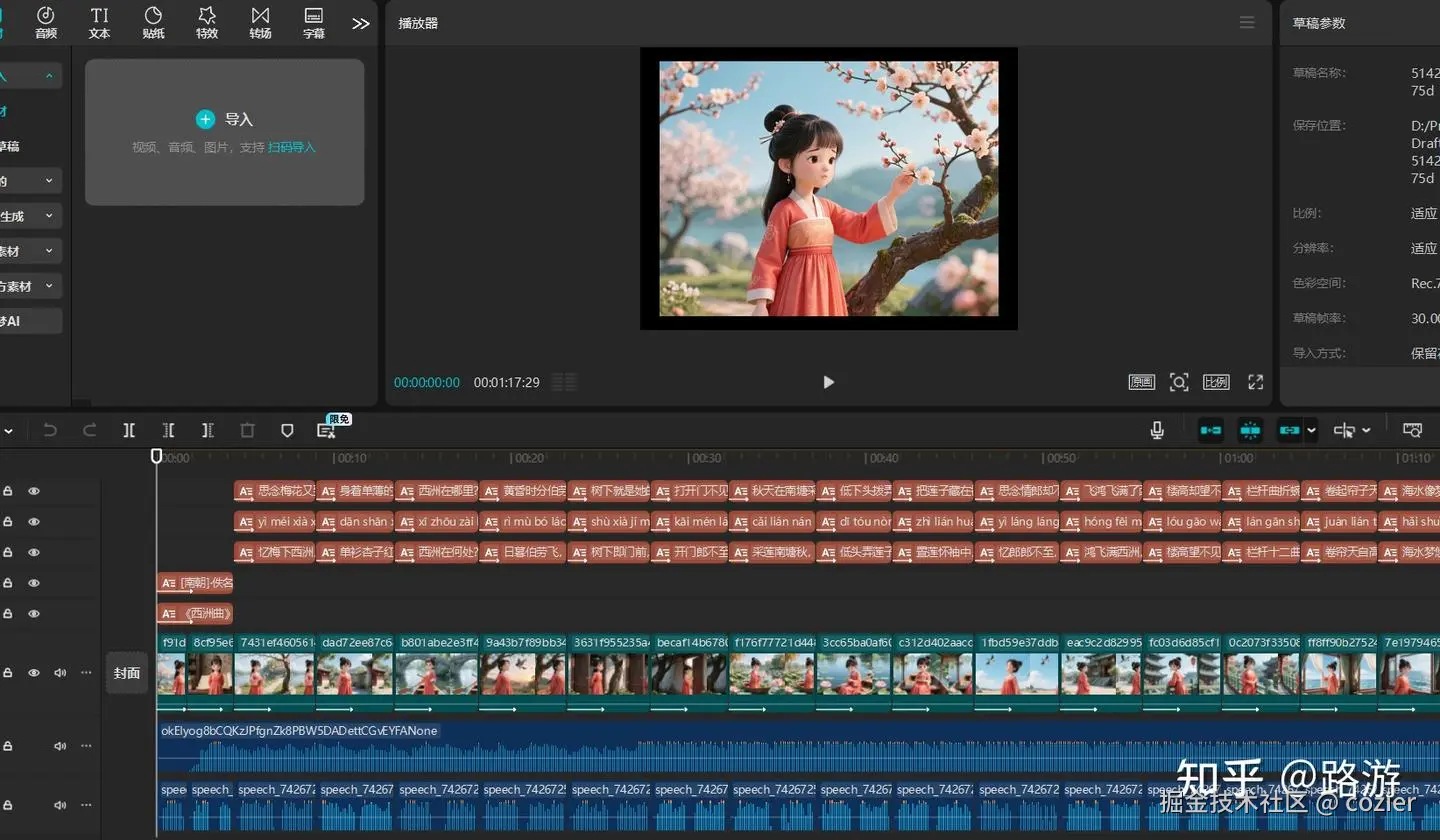 这一步是利用工具把素材进行组装,然后导出为成品的剪映草稿。步骤相对多点,因为涉及到字幕、语音和画面的对齐以及特效生成。