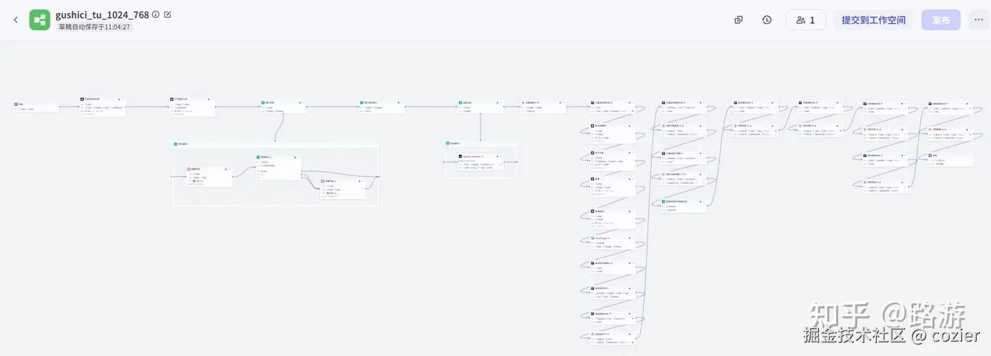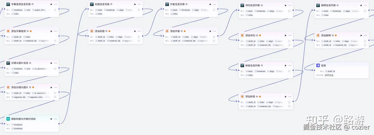 在coze平台一键导入工作流,导入后如截图,这个是整体流程: