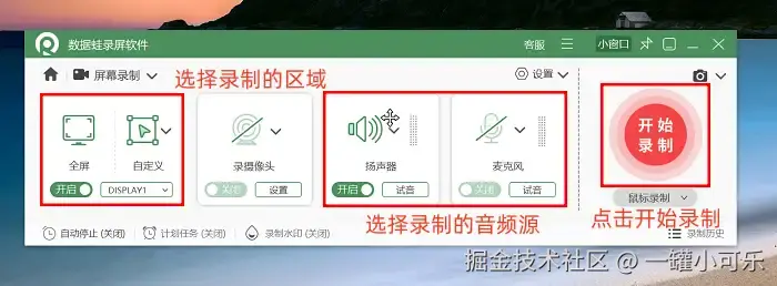 Shujuwa Screen Recorder也有自己的特点,它提供了多种录制模式,除了常见的全屏和区域录制,还有一些特色模式。在音频录制方面,也能较好地平衡系统声音和麦克风声音的录制效果。
