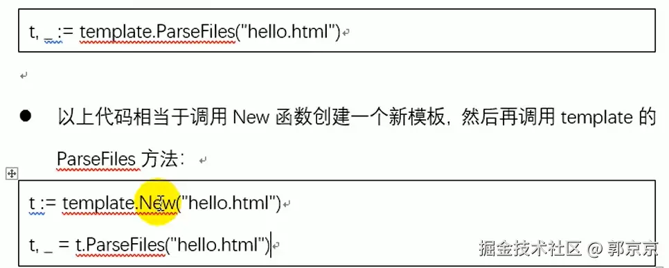 Go标准库提供html/template(HTML专用模板(自动转义HTML特殊字符))和text/template(通用文本渲染)两个包,其核心流程分为三步: