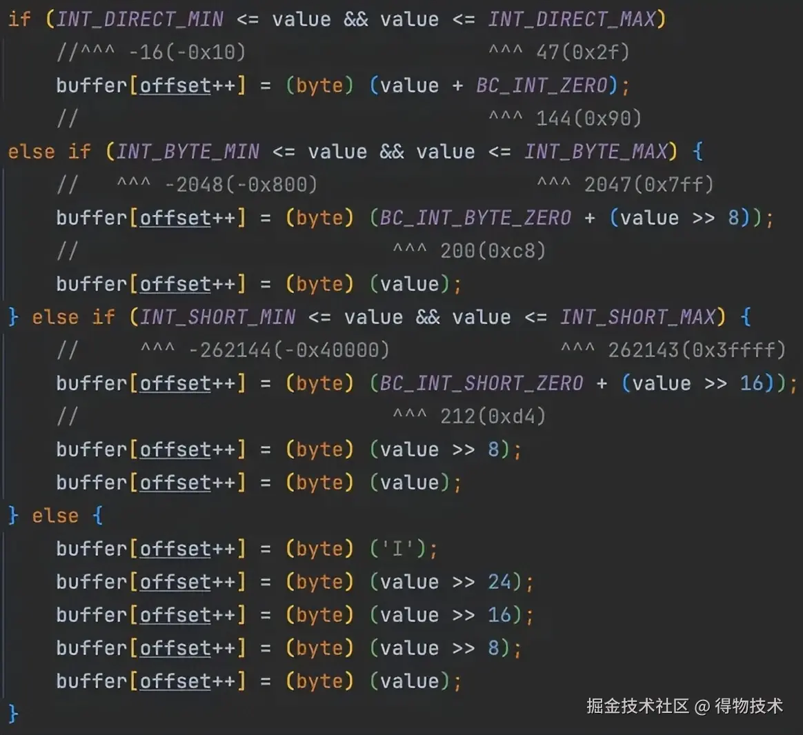 因为tag是一个byte(int8) ,取值范围是0-255,每个tag标识一种特定的数据类型(int、boolean等),但是这些数据类型最多几十种,取值范围内还有很大的数值区间没有被使用,其实比较浪费。那我们就可以把这些空闲的tag值,挪作他用,提升tag数值空间利用率。