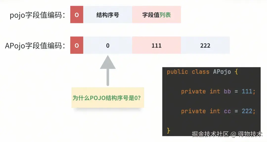 - POJO的编码tag O需要一个整数来引用POJO结构引用序号。