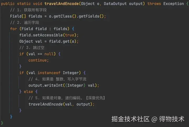 对象图遍历决定了编码能力的下限(能否正确处理对象结构),而编码格式决定了编码能力的上限(传输效率、兼容性等)。