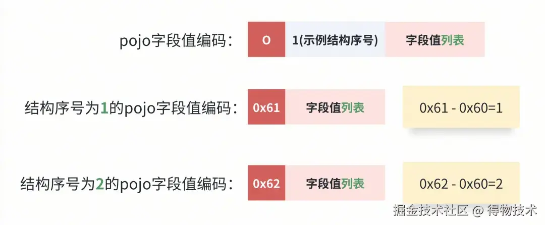 当0x60 <= tag <= 0x70 时,标识后续的数据块为POJO字段值。