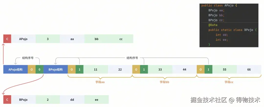 遥相呼应的,解码侧每次解码一个tag为C的POJO结构数据块时,也会按解码顺序维护好其索引序号。