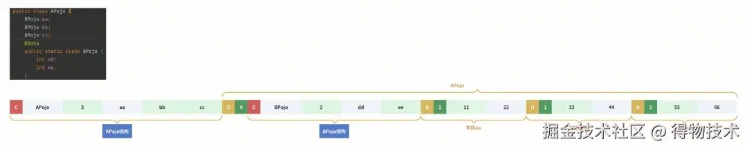 - POJO的编码tag O需要一个整数来引用POJO结构引用序号。