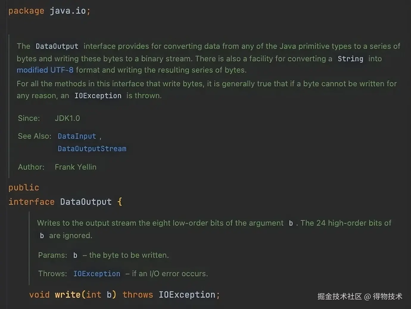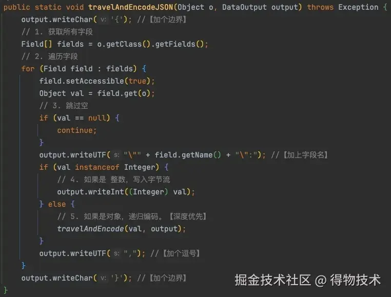 我们使用标准库里的java.io.DataOutput来进行伪代码说理,这个类提供了一些语义化的编码function。