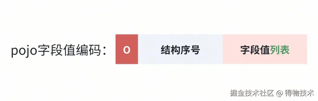可以看到,编码POJO字段值的时候,在tag后面有一个POJO结构序号。