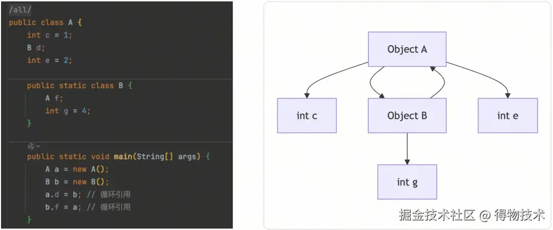 宏观来看,A类型的对象其实是一棵树(或图) ,如果脑补不出来的话,我给你画个图:
