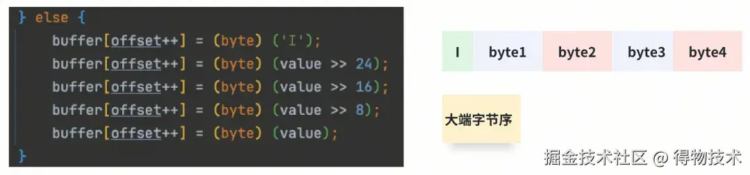 上述 I 就是整数类型的tag。解码端读取tag后,按tag值来解码数据。