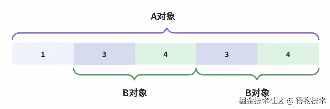 相同的一个B对象,因为被两个字段重复引用,导致2次编码、产生2份数据空间占用!