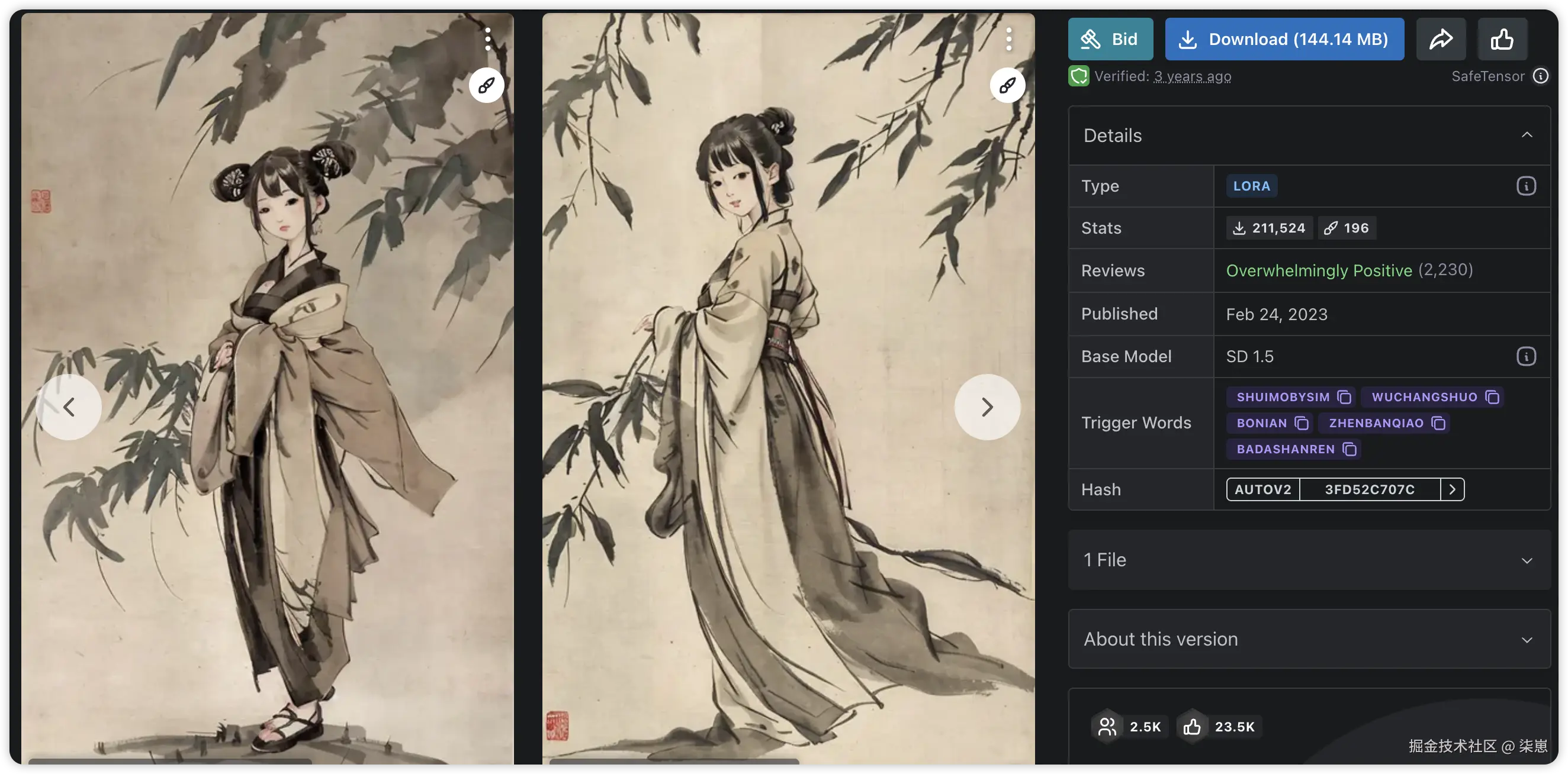 LoRA是一种文件体积小、使用灵活的模型,你可以简单把它理解成“滤镜”,它可以让你的图片具有特定的风格、内容、细节等。