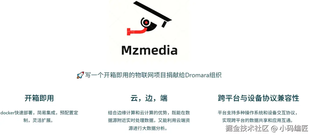 MzMedia是一个开源免费、轻量级的视频联动物联网平台,基于RuoYi-Vue-Plus进行深度定制和扩展,使用Spring Boot + Vue3技术栈开发,支持JDK17/19,适用于智能家居、农业监测、水利监测、工业控制、车联网等多种场景。