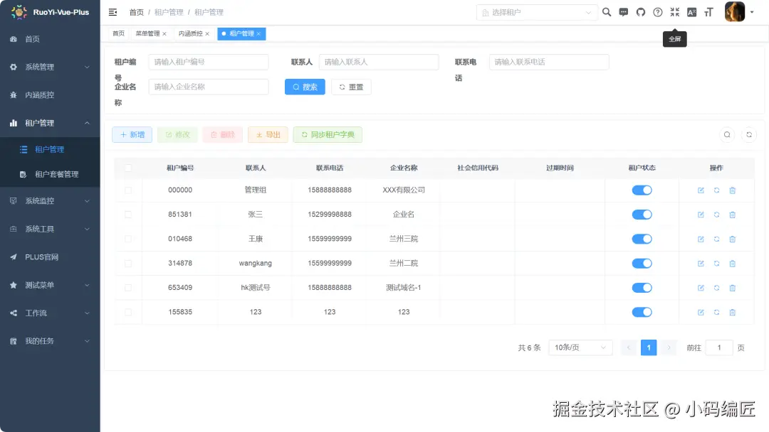 系统支持多租户架构,具备完善的权限体系和数据隔离机制,适合SaaS化部署。前端采用Vue3 + TS + Element Plus,界面现代、响应迅速;后端结构清晰,插件化设计便于功能扩展。