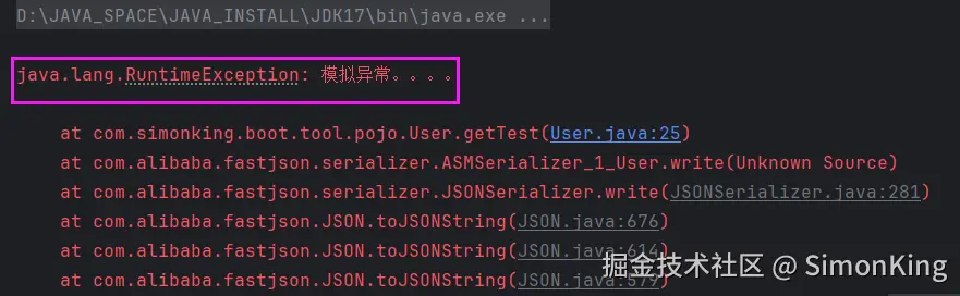 定义一个实体类,里面定义了一个getter,直接抛出异常。