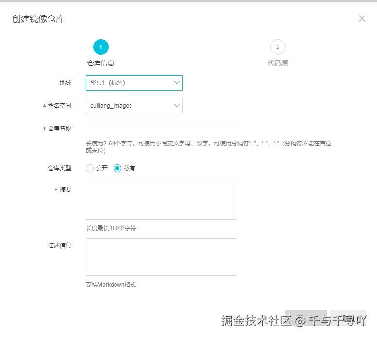 2. 登陆阿里云的容器镜像服务然后点击创建镜像仓库