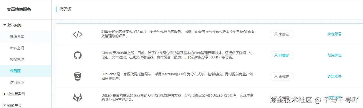 3. 代码源绑定github账号