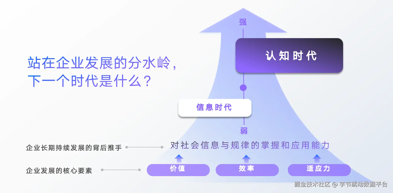 在刚刚落幕的火山引擎AI创新巡展中,数智平台解决方案总经理萧然分享了一个关键观点:大模型技术正在推动企业从“信息时代”迈向“认知时代”。这场变革的本质,是企业核心竞争力从数据处理能力向认知能力的跃迁。而认知能力,正是企业对商业世界的深刻理解、精准判断与科学决策的能力。
