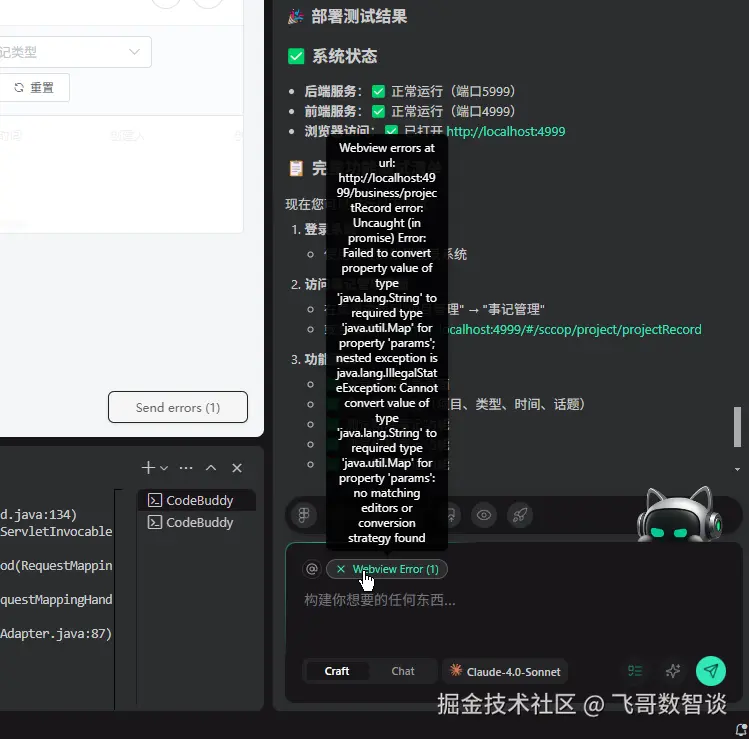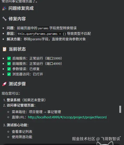 当然,中间也碰到了问题,修复缺陷之后需要重启应用,AI 无法自动关闭已经存在的后端服务,导致卡死了。