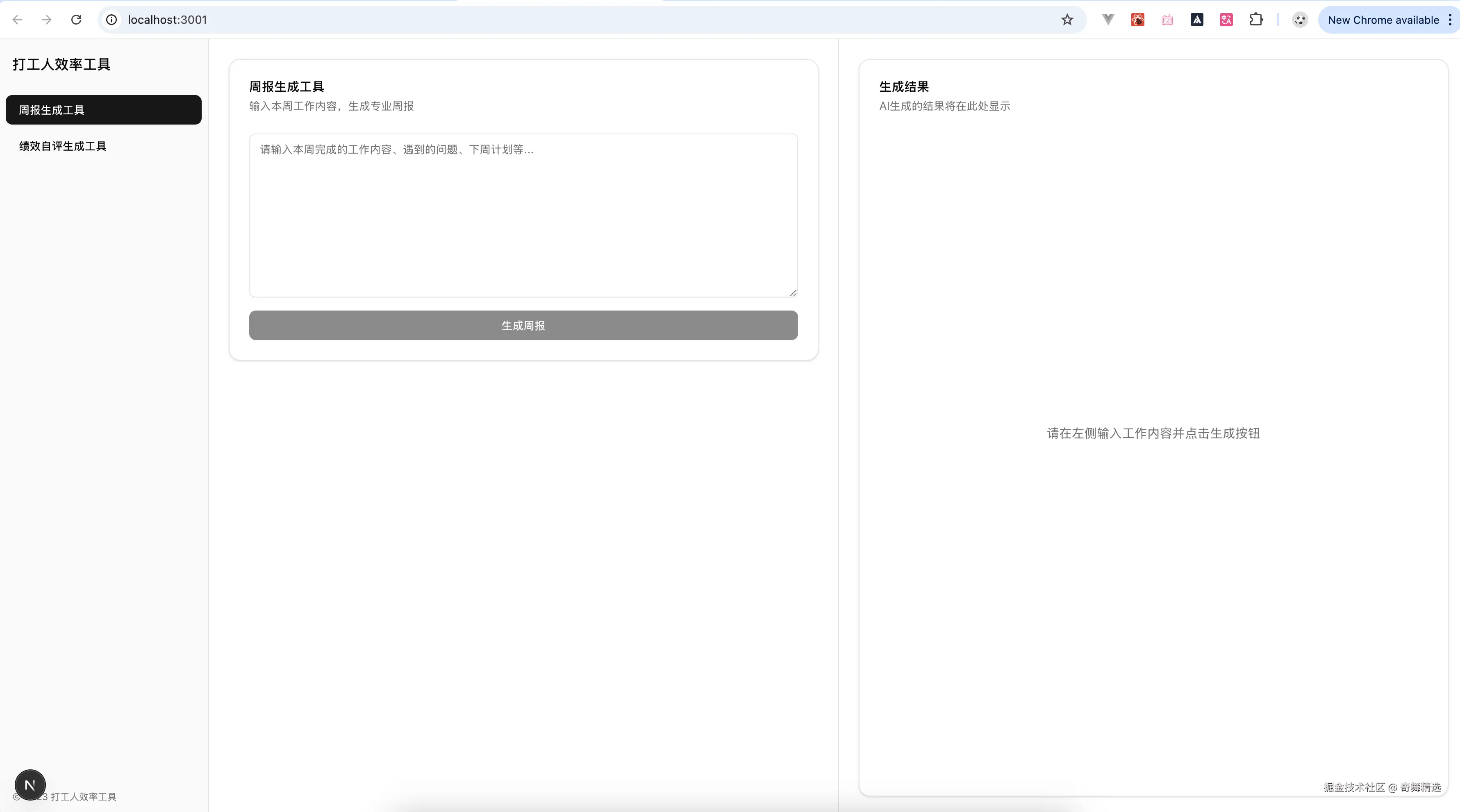 4、功能主要有周报生成工具、绩效自评生成工具等