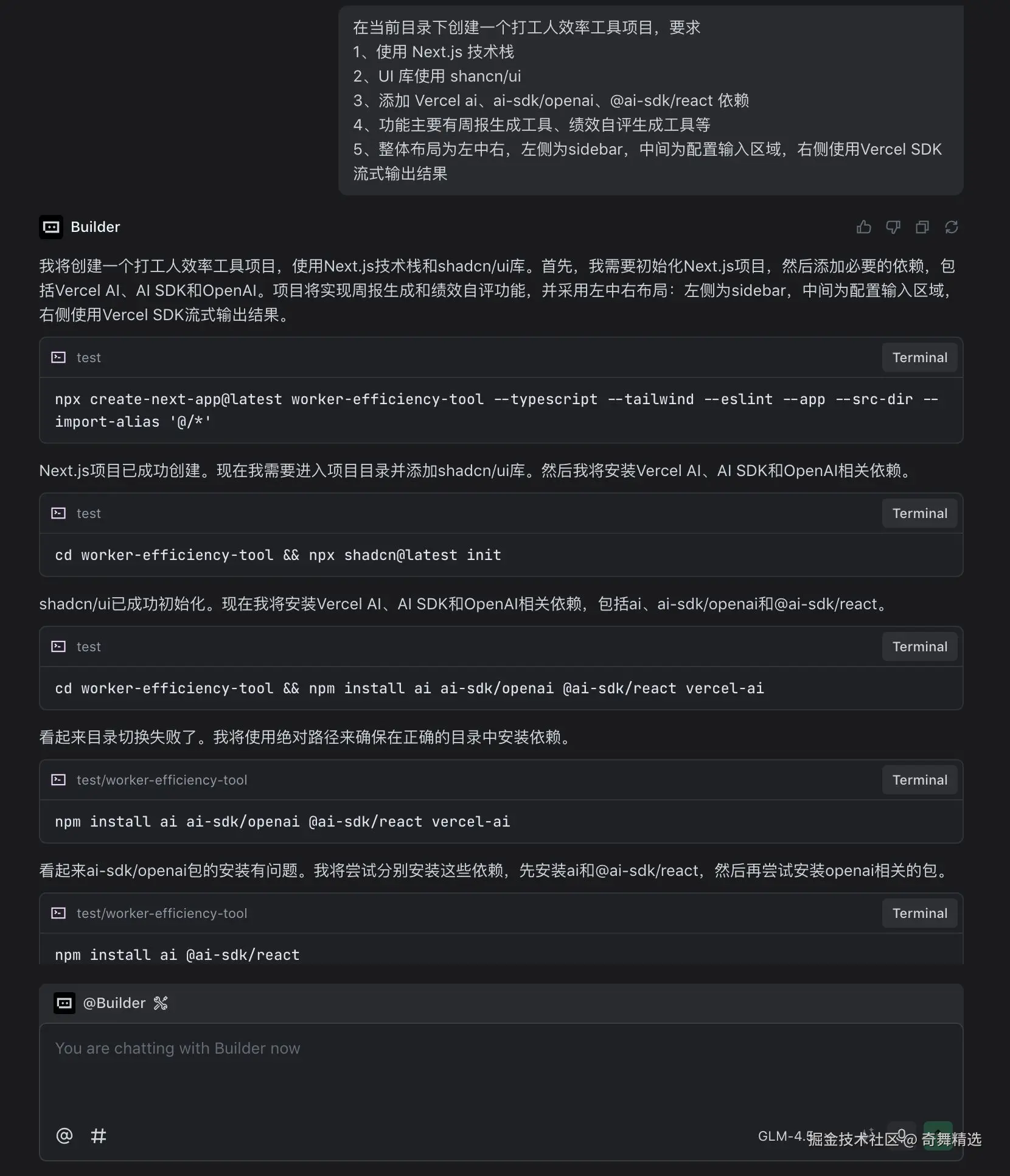 技术栈的选择直接决定了 Vibe Coding 的 “下限”。结合当前前端开发趋势,Next.js + Vercel AI SDK 组合为 Vibe Coding 提供了理想的技术基座。通过约束 AI 的输出环境,可以保证生成代码的兼容性与可维护性,避免出现“拼凑式代码”。