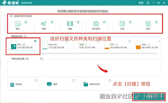 数据 蛙恢复专家是一款操作简单的误删文件恢复软件,即使是第一次使用软件的朋友,也能够跟着里面的提示进行使用,容错率高,不用怕操作失误后对丢失文件造成进一步损失。该软件支持的文件类型十分丰富,其中日常常见的文件类型 (文档、图片、电子邮件、音频、视频) 还能作为扫描条件进行设置,筛选过后进行文件扫描,找到目标文件更轻松。